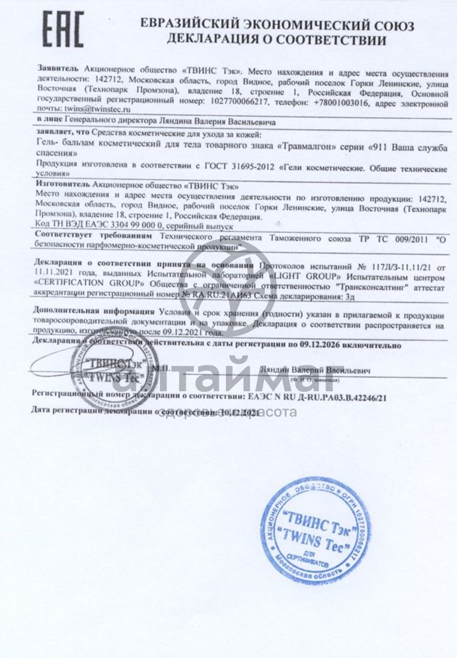 - Чтобы купить Гель для тела ТРАВМАЛГОН 911 совершите всего несколько шагов: укажите количество продукта и нажмите на кнопку «Купить».