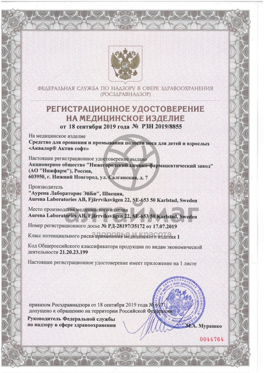 Фармакологическое действие Аквалор Софт мини