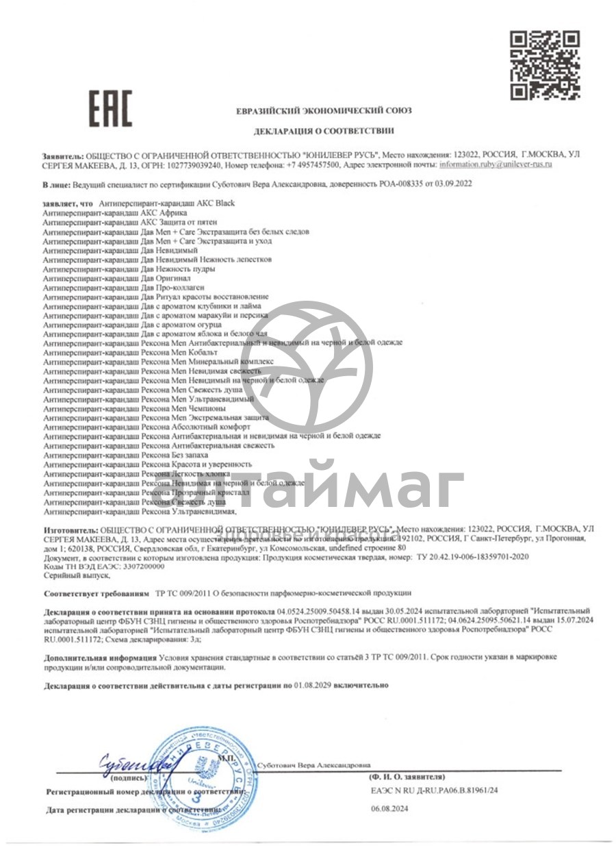 Сyclopentasiloxane, aluminum zirconium tetrachlorohydrex gly, stearyl alcohol, c12-15 alkyl benzoate, ppg-14 butyl ether, hydrogenated castor oil, parfum, polyethylene, bht, caprylic/capric triglyceride, gelatin crosspolymer, cellulose gum, sodium benzoate, aqua, hydrated silica, sodium starch octenylsuccinate, maltodextrin, hydrolyzed corn starch, silica, alpha-isomethyl ionone, benzyl alcohol, benzyl salicylate, citral, coumarin, hexyl cinnamal, limonene, linalool.Способ применения