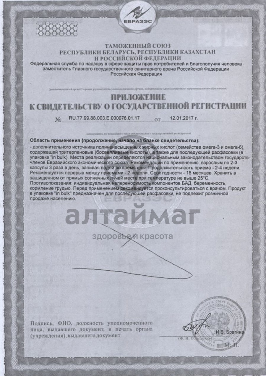 экстракт смолы сухой Boswellia seratta (ладанного дерева) 30 мг