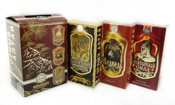 Бальзам "Княжеский" (на сахаре) способствует усилению иммунитета, улучшает работоспособность, усиливает потенцию, придает силы. Бальзам "Медведь" (на сахаре) помогает в профилактике мужских заболеваний, восстанавливает и усиливает мужскую потенцию и силу, нормализует деятельность желудочно-кишечного тракта, оказывает стимулирующее и укрепляющее действие на весь организм. Бальзам "Богатырская сила" (на сахаре) стимулирует сердечную деятельность, тонизирует, нервную систему, возбуждающе действует при умственной и физической усталости, импотенции, снижает содержание холестерина в крови, улучшает кровообращение, понижает проницаемость стенок сосудов и капилляров, нормализует эмоциональное состояние, обладает бактерицидным действием.