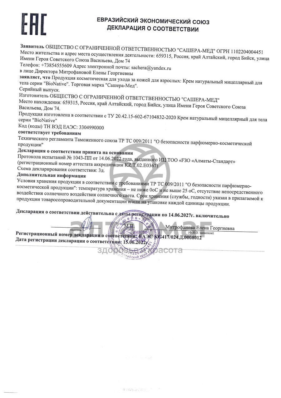 Натуральный мицеллярный крем для тела BioNative – оригинальная органическая природная формула с межфазной системой высвобождения активных веществ в слоях кожи, направленных на регуляцию уровня влаги, перераспределение питательных веществ, нормализацию барьерных, транспортных, эластических, дыхательных, эндокринных, иммунных функций кожи.
