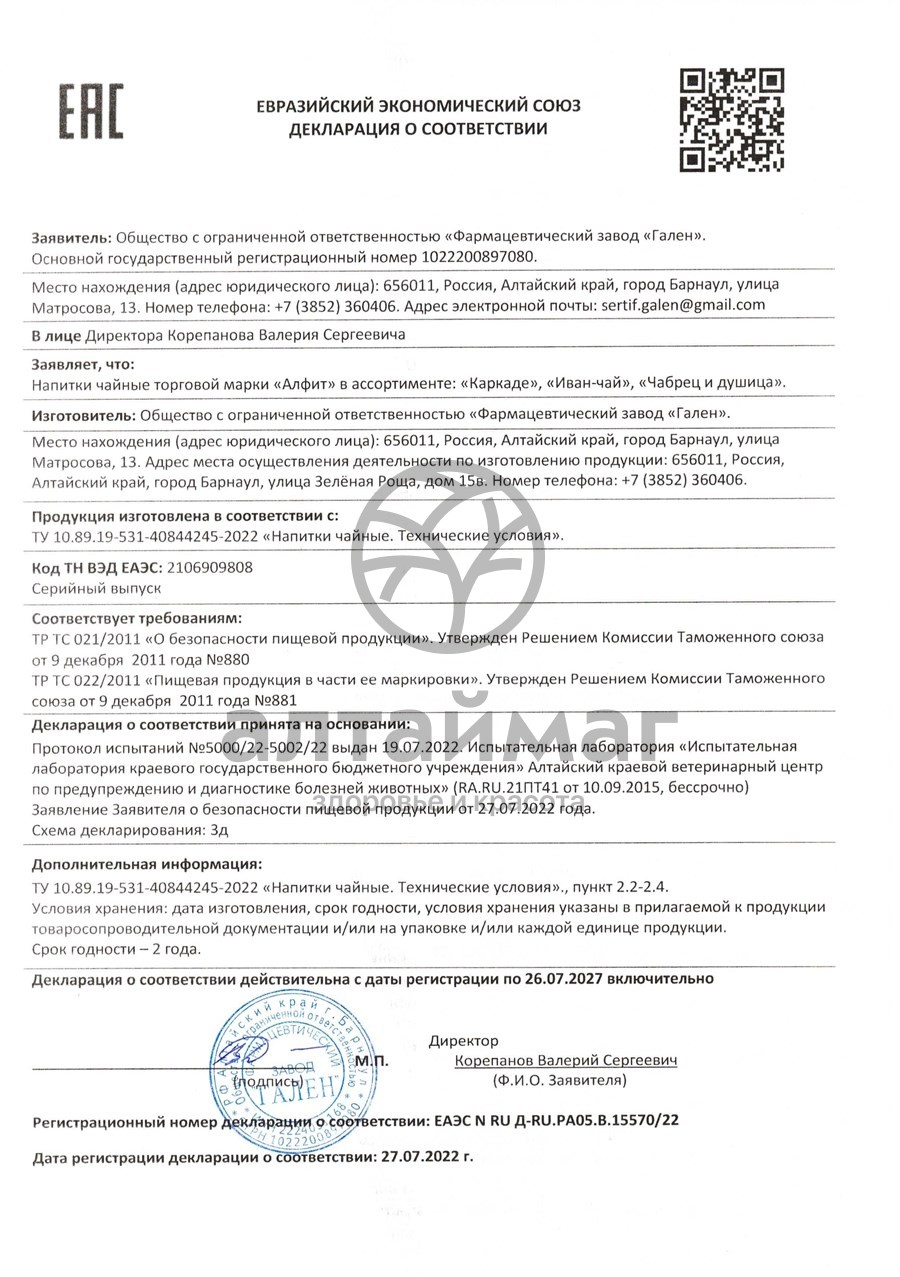 - Чтобы купить Чай травяной Чабрец и Душица Алфит №20 совершите всего несколько шагов: укажите количество продукта и нажмите на кнопку «Купить».