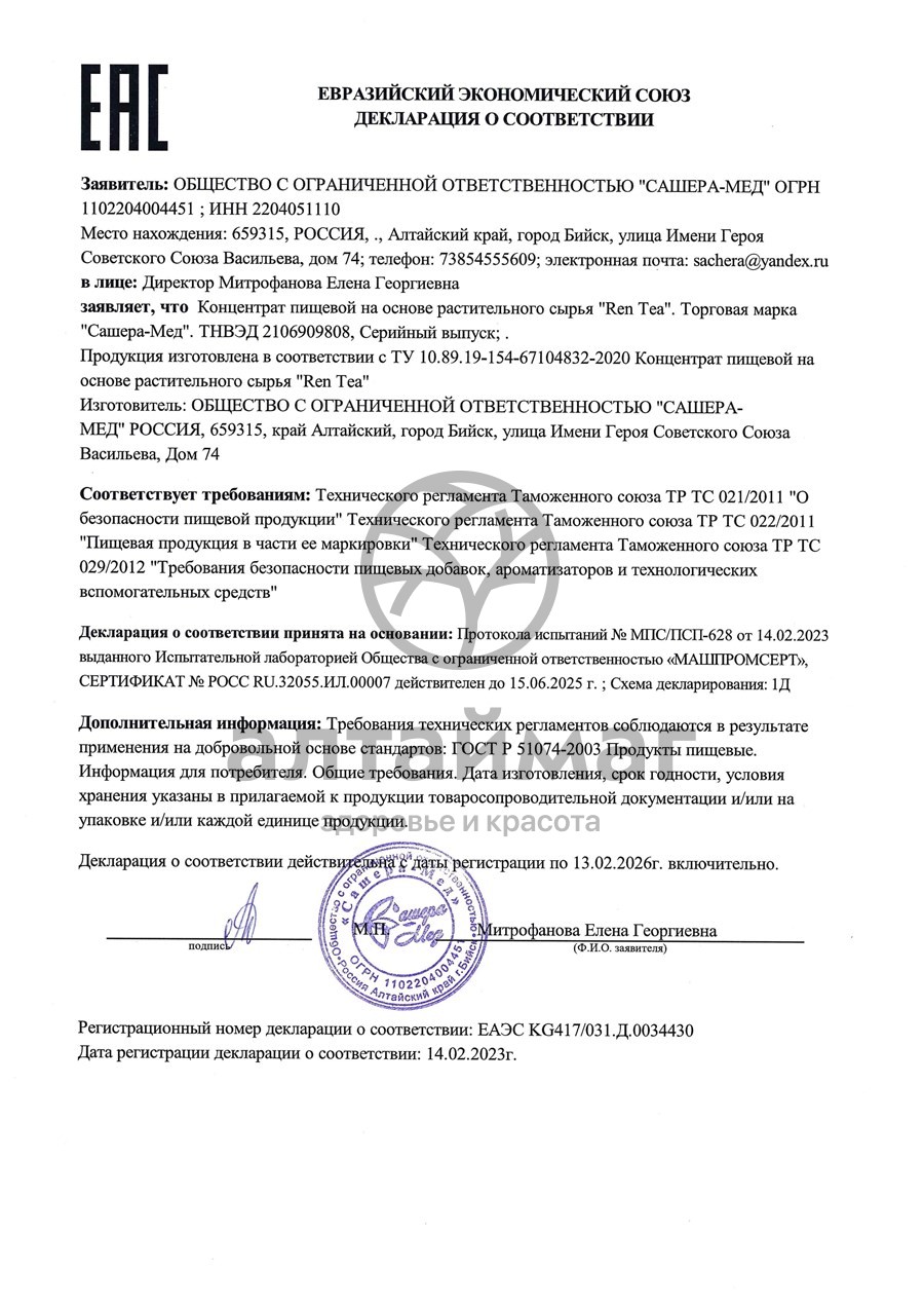 - Купите Чай Ren Te для почек Сашера-Мед 20 фильтр-пакетов в Нур-Султане по доступной цене 200 ₽ с доставкой на дом или заберите Ваш заказ в Нур-Султане из ближайшего пункта выдачи, сделав заказ на AltaiMag.ru.