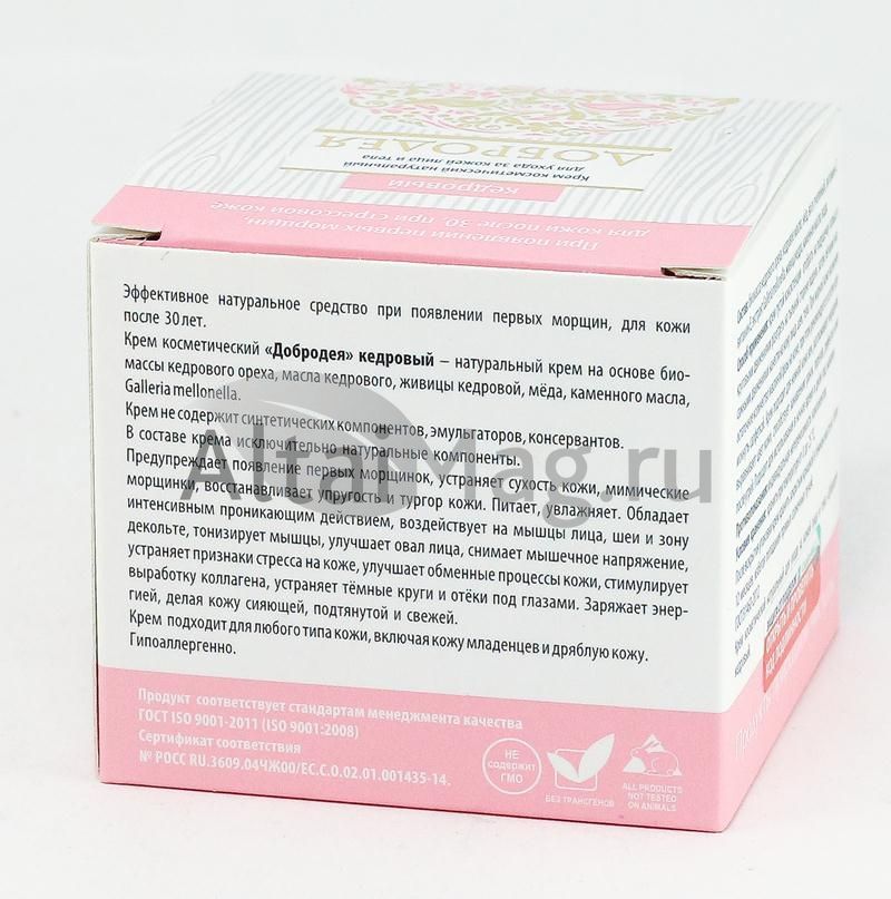 - Чтобы купить Крем Кедровый Добродея, 30 г совершите всего несколько шагов: укажите количество продукта и нажмите на кнопку «Купить».