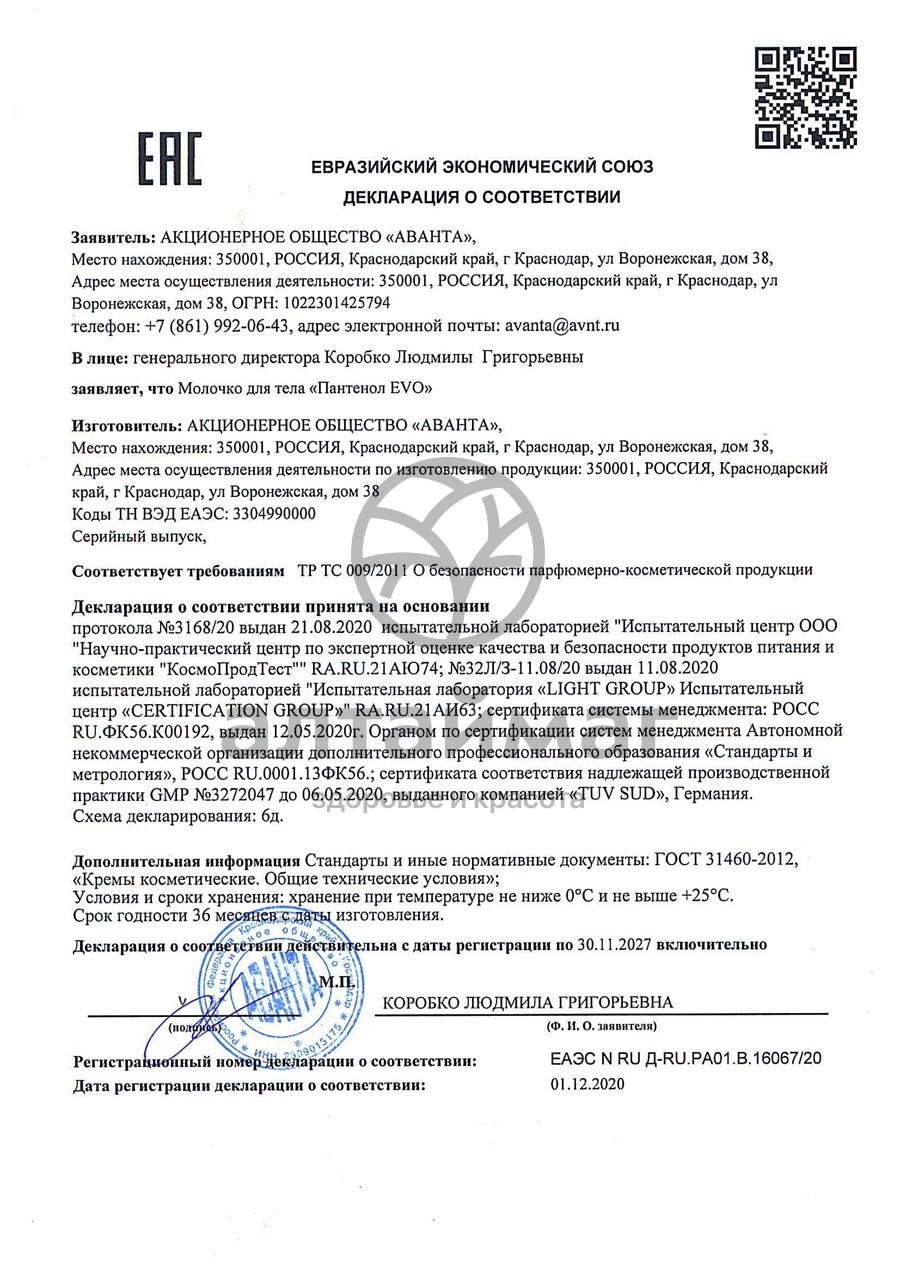 Есть вопросы по товару "Молочко для тела Эво Пантенол Аванта 250мл"?