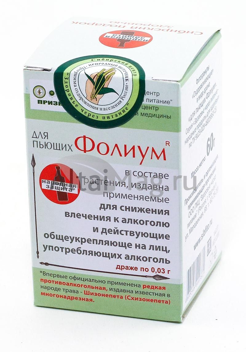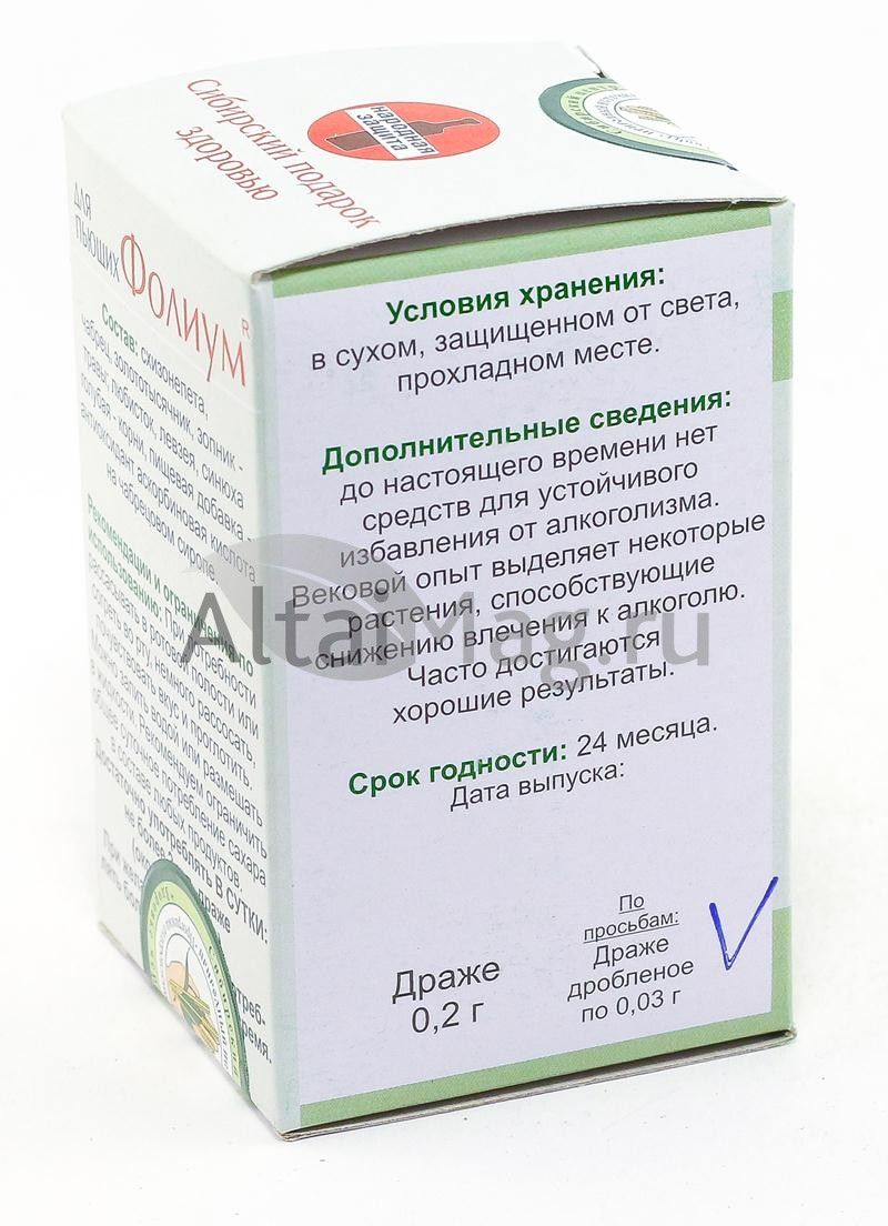 Фолиум для пьющих. В составе растения, применяемые для снижения влечения к алкоголю и действующие общеукрепляюще на лиц, употребляющих алкоголь.