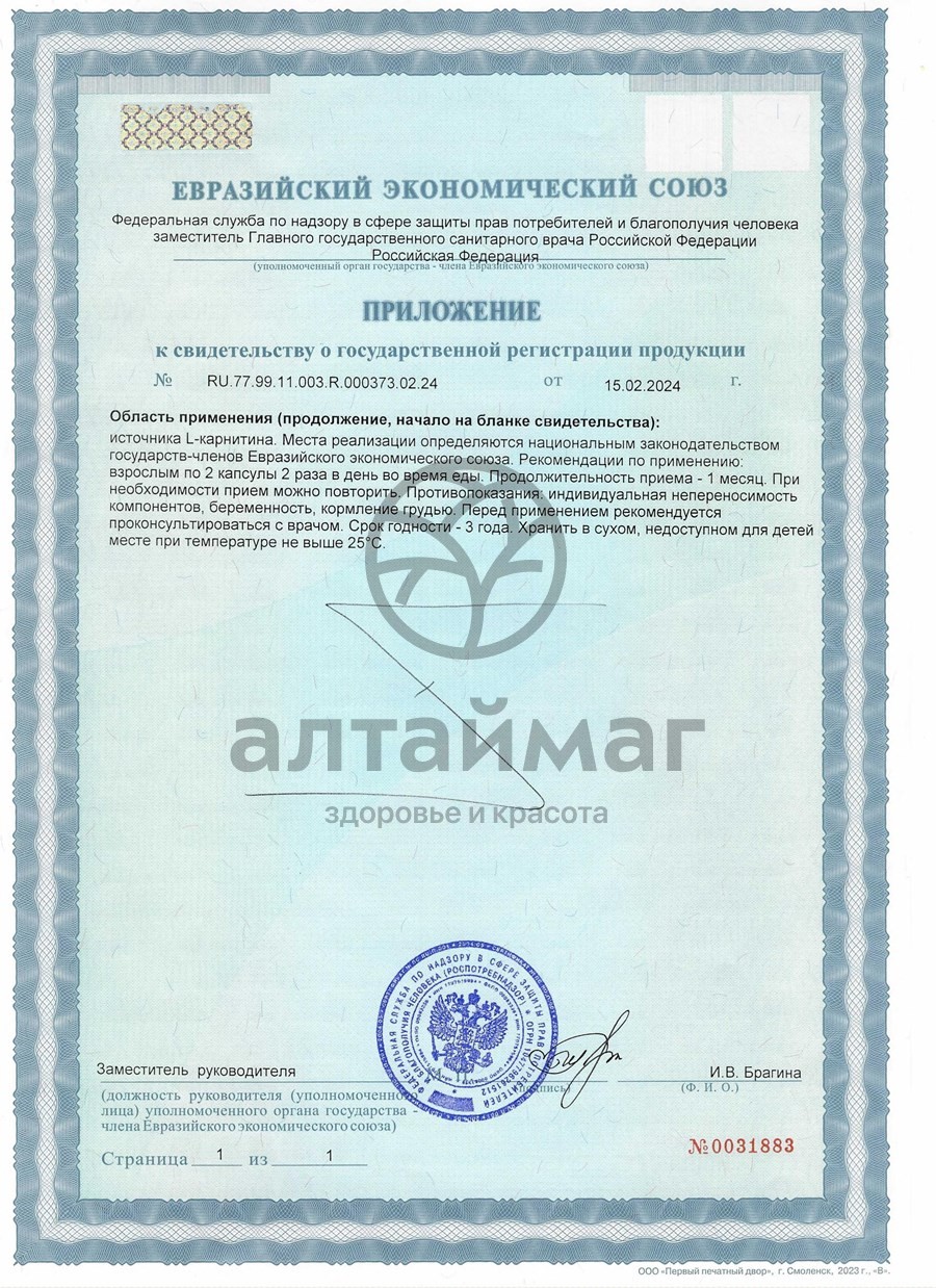 L-карнитин (из L-карнитина тартрата) — 900,0 мг. Вспомогательные антислеживающие агенты кальциевая соль стеариновой кислоты и кремния диоксид аморфный, капсула (желатин).Способ применения