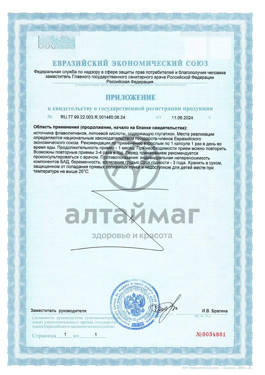 Глутатион, экстракт расторопши, оболочка капсулы (гипромеллоза), альфа-липоевая кислота.Способ применения