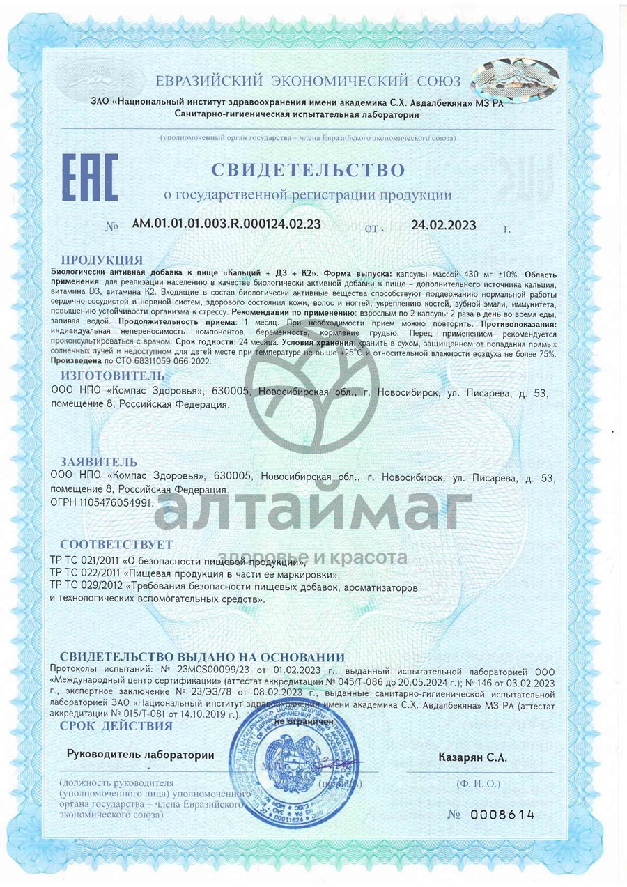 - Купите Кальций D3+K2 Компас Здоровья 120 капсул в Нур-Султане по доступной цене 421 ₽ с доставкой на дом или заберите Ваш заказ в Нур-Султане из ближайшего пункта выдачи, сделав заказ на AltaiMag.ru.