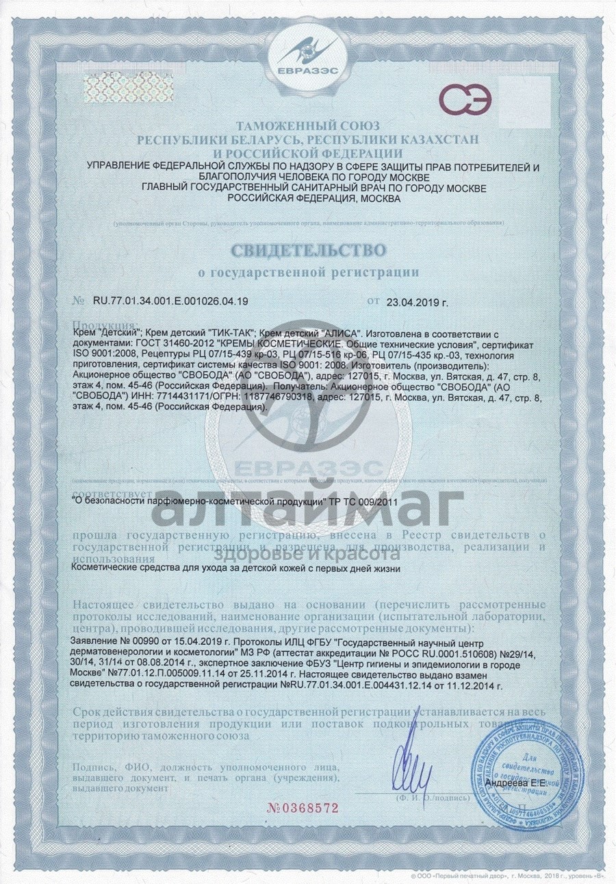 Есть вопросы по товару "Крем детский Свобода 40 г"?