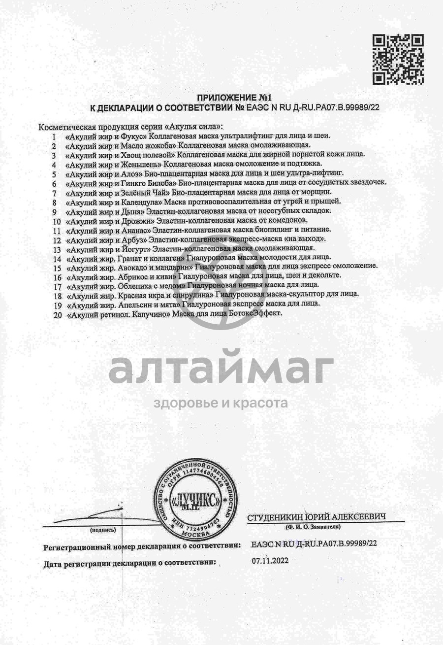 Есть вопросы по товару "Маска для лица ночная гиалуроновая с лифтинг эффектом Акулий жир Облепиха с медом 10мл"?