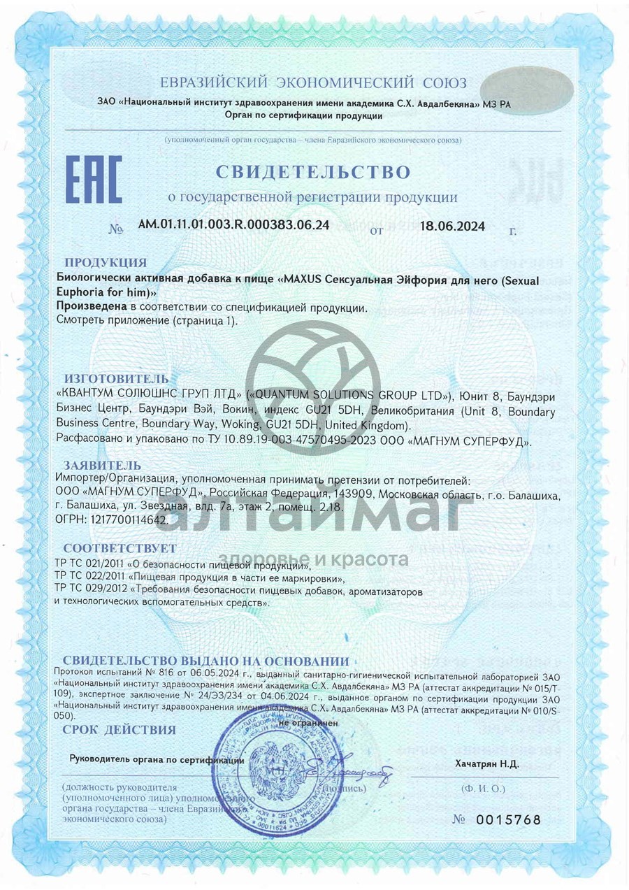 Есть вопросы по товару "Maxus Sexual Euphoria для него 60 капсул"?