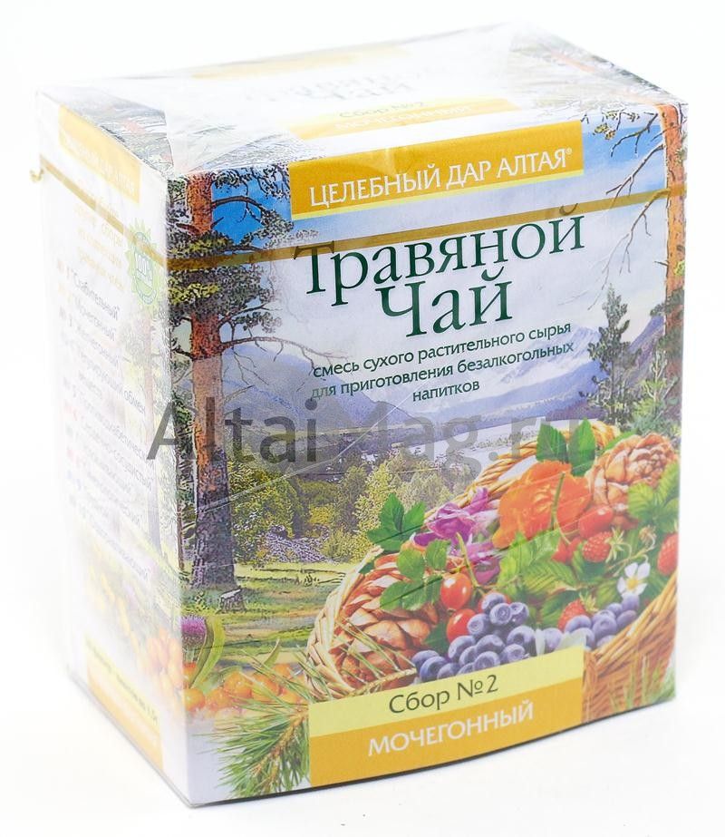 Натуральные травяные чаи Целебный дар Алтая изготовлены из ценнейших лекарственных растений, ягод и плодов, бережно собранных в экологически чистых районах Алтая. Попробуйте травяной чай, из коллекции Целебный дар Алтая, и он наполнит Вас силой могучих гор, бодростью горных рек, энергией и здоровьем сибирской тайги, создаст атмосферу приятных воспоминаний или мечтаний об удивительных путешествиях на Алтай. Сбор обладает противовоспалительным и мягким мочегонным действием, способствует устранению отоков, препятствует образованию камней. Оказывает дезинфицирующее, антисептическое, вяжущее, мочегонное действие. Эффективен при циститах, уретрите, заболеваниях мочевыводительной системы.