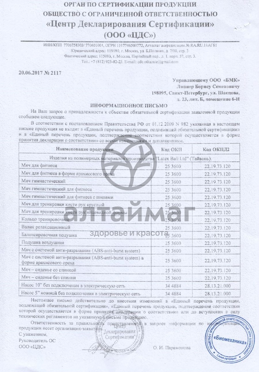 Мяч произведен из синтетического полимерного материала – поливинилхлорида. Это – гигиеничный, химически нейтральный материал. Он устойчив к химическому действию щелочей, масел, широкого перечня кислот и растворителей. Кроме того, он характеризуется устойчивостью к влиянию низких температур (до -15°C) и значительной стойкостью к нагреву (до +65°С).