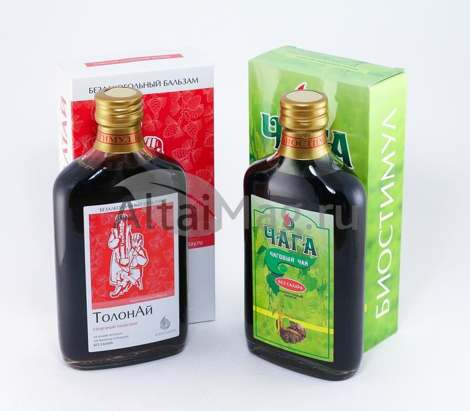Подарочный набор с натуральными бальзамом без сахара "ТолонАй" и безалкогольным напитком "Чага".