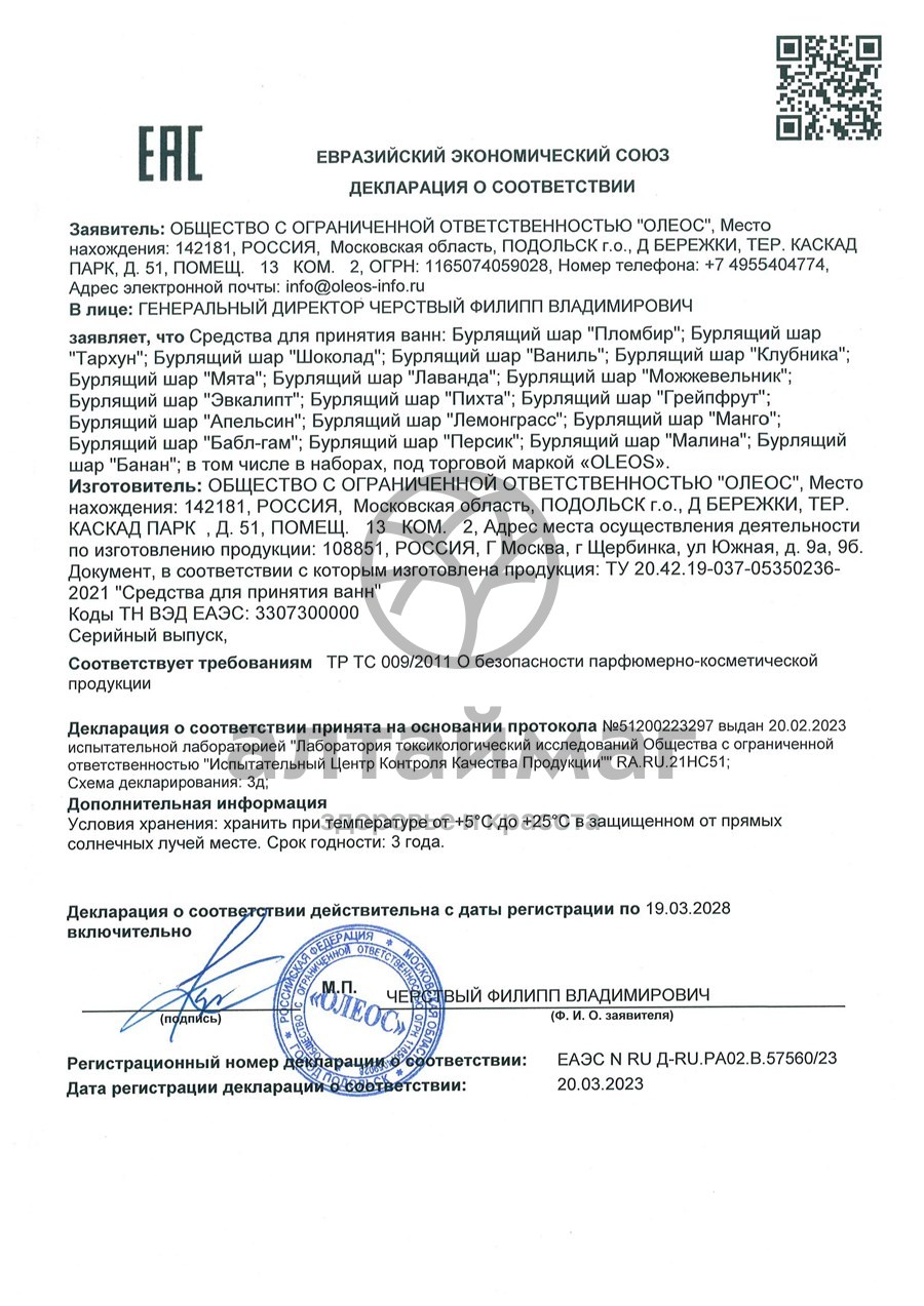 - Чтобы купить Бурлящий шар Ваниль Oleos 110г совершите всего несколько шагов: укажите количество продукта и нажмите на кнопку «Купить».