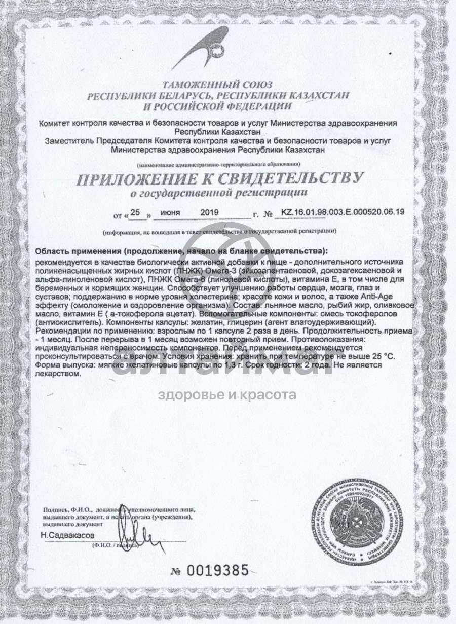 Компоненты капсулы: желатин, глицерин (агент влагоудерживающий); рыбий жир – 400 мг, кедровое масло – 400 мг, льняное масло – 400 мг, смесь токоферолов (антиоксилитель).Назначение