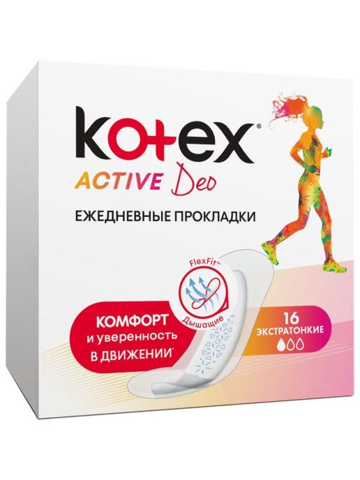Новые экстратонкие ежедневные прокладки Kotex Active Deo (Котекс Эктив Део) созданы специально для активных девушек.