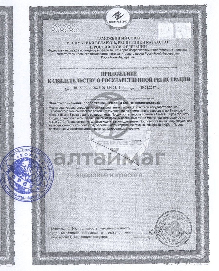 Взрослым по 1 столовой ложке (15 мл) сиропа 3 раза в день во время еды. Детям до 12 лет — половинная норма. Рекомендуемая продолжительность приема — 1 месяц (15 флаконов).