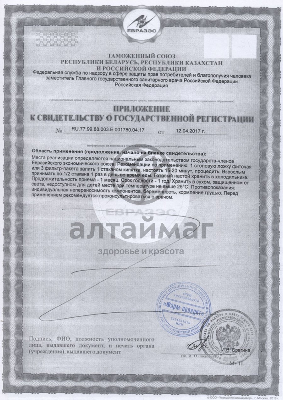 1 столовую ложку фиточая заварить 1 стаканом кипятка, настоять 15-20 минут, процедить и принимать взрослым по 1/2 стакана 1 раз в день во время еды.