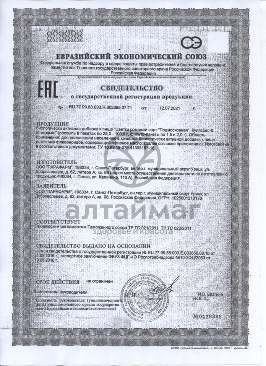 Есть вопросы по товару "Ромашки цветки сорт подмосковная Парафарм 20 пакетиков"?