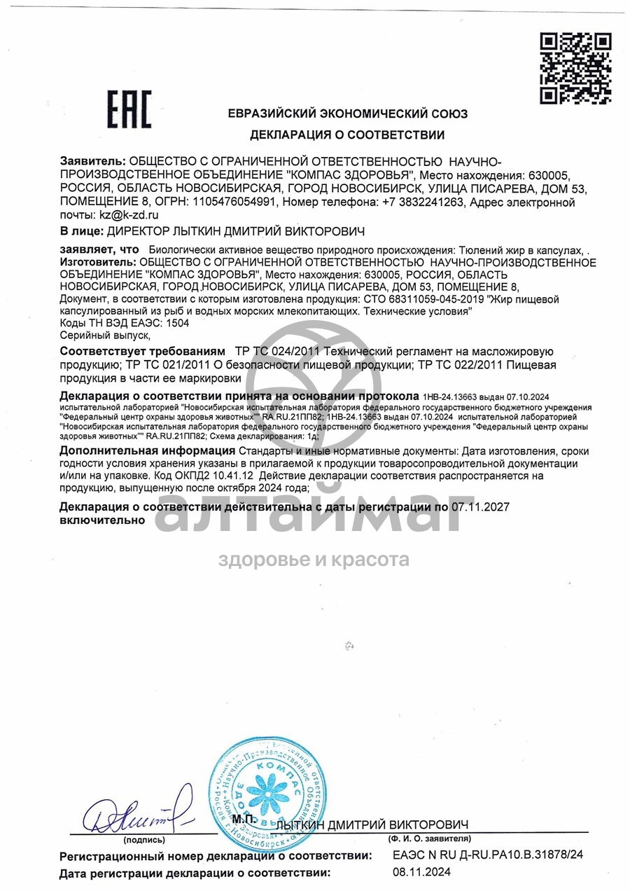 Есть вопросы по товару "Тюлений жир в капсулах 300мг 120 шт"?