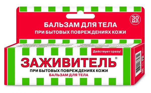 Бальзам Заживитель способствует быстрому заживлению ран, ушибов, ссадин, ожогов (в том числе солнечных), трещин кожного покрова, обветриваний и обморожений без образования рубцов. Благодаря наличию биоактивных компонентов, активизирует защитные свойства кожи, оказывает бактерицидное и антисептическое действие. Бальзам значительно сокращает сроки заживления повреждений кожи, не содержит гормональных и антибиотических компонентов, имеет высокую проникающую способность.